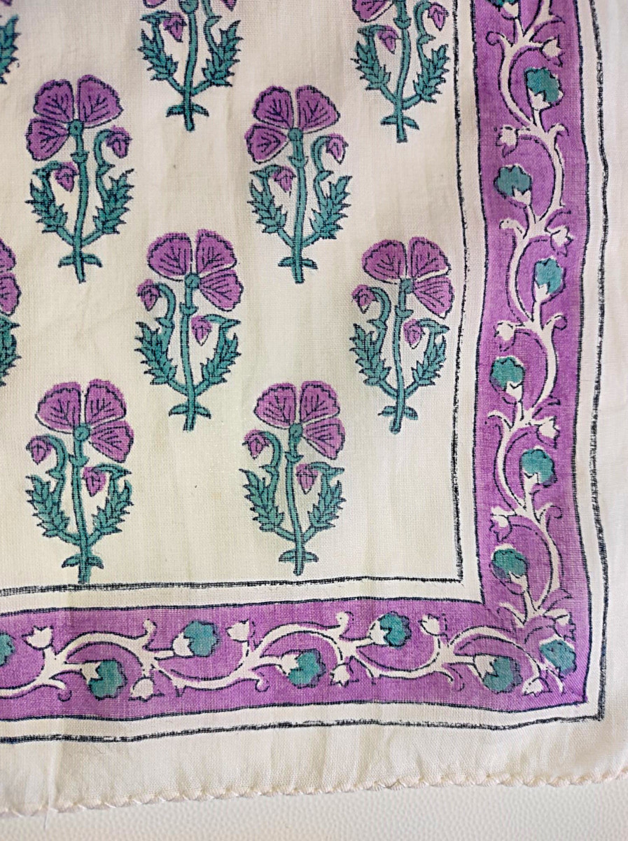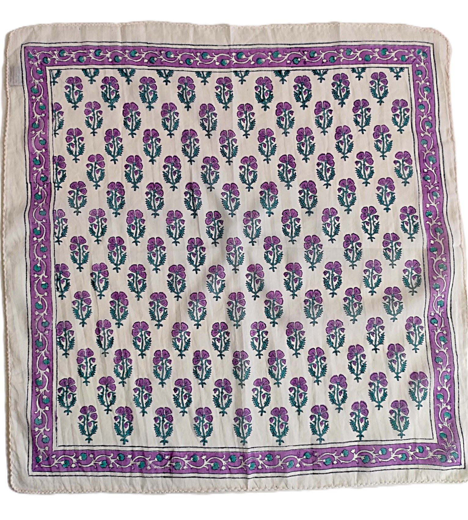 Carré foulard bandana en voile de coton – Block print Jaipur (50x50 cm) - COCHIN