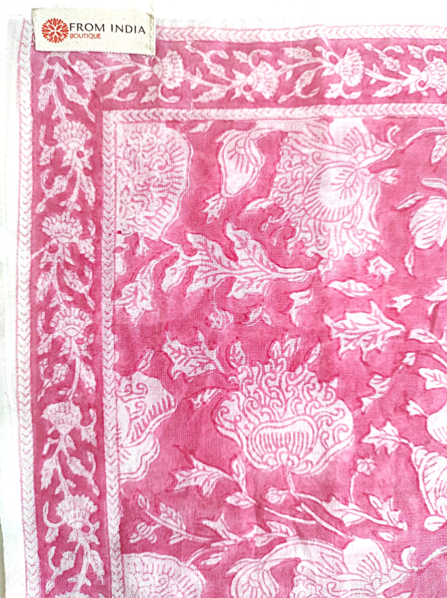 Carré foulard bandana en voile de coton – Block print Jaipur (50x50 cm) - DELHI