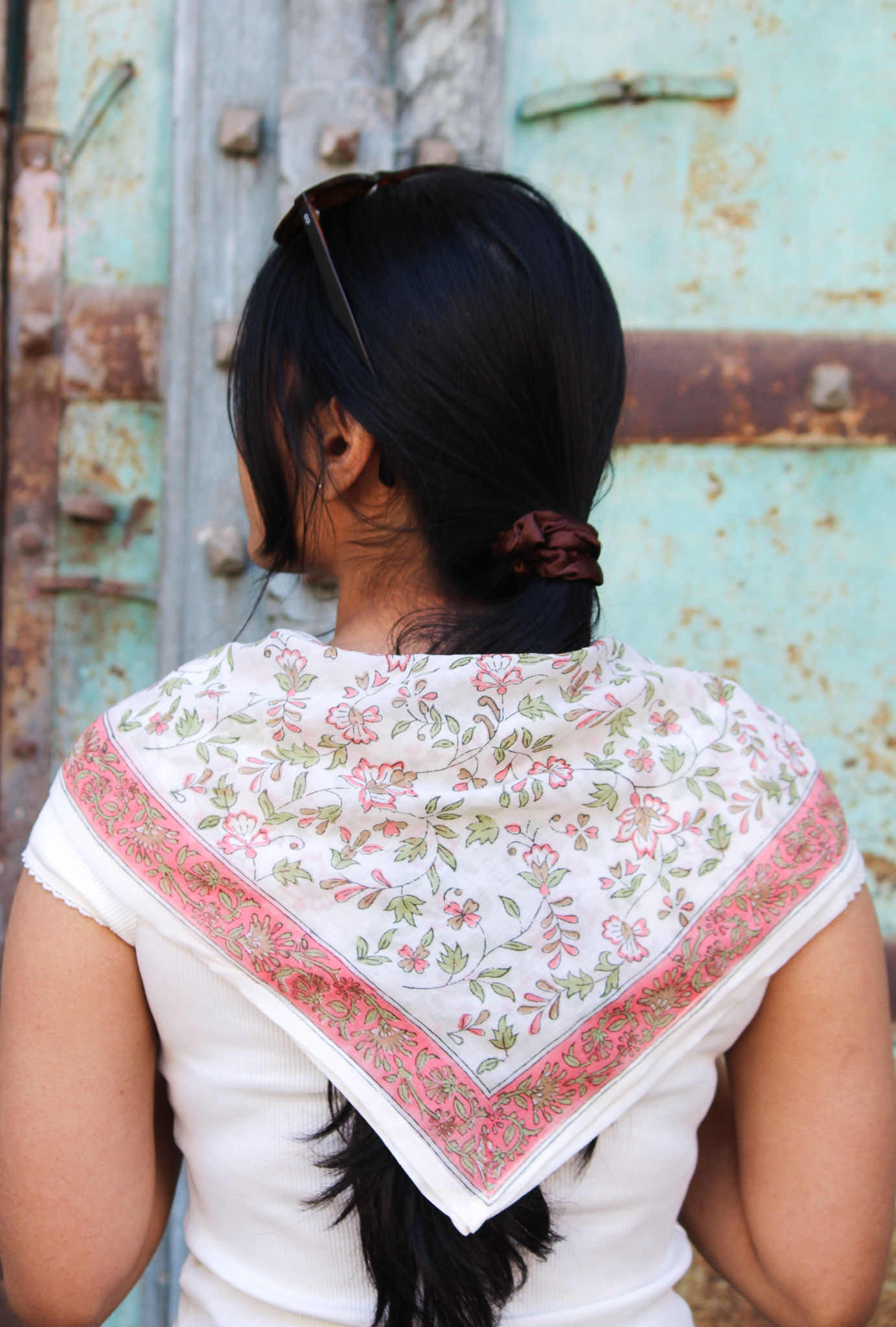 Carré foulard bandana en voile de coton – Block print Jaipur (50x50 cm)- KOLKATA