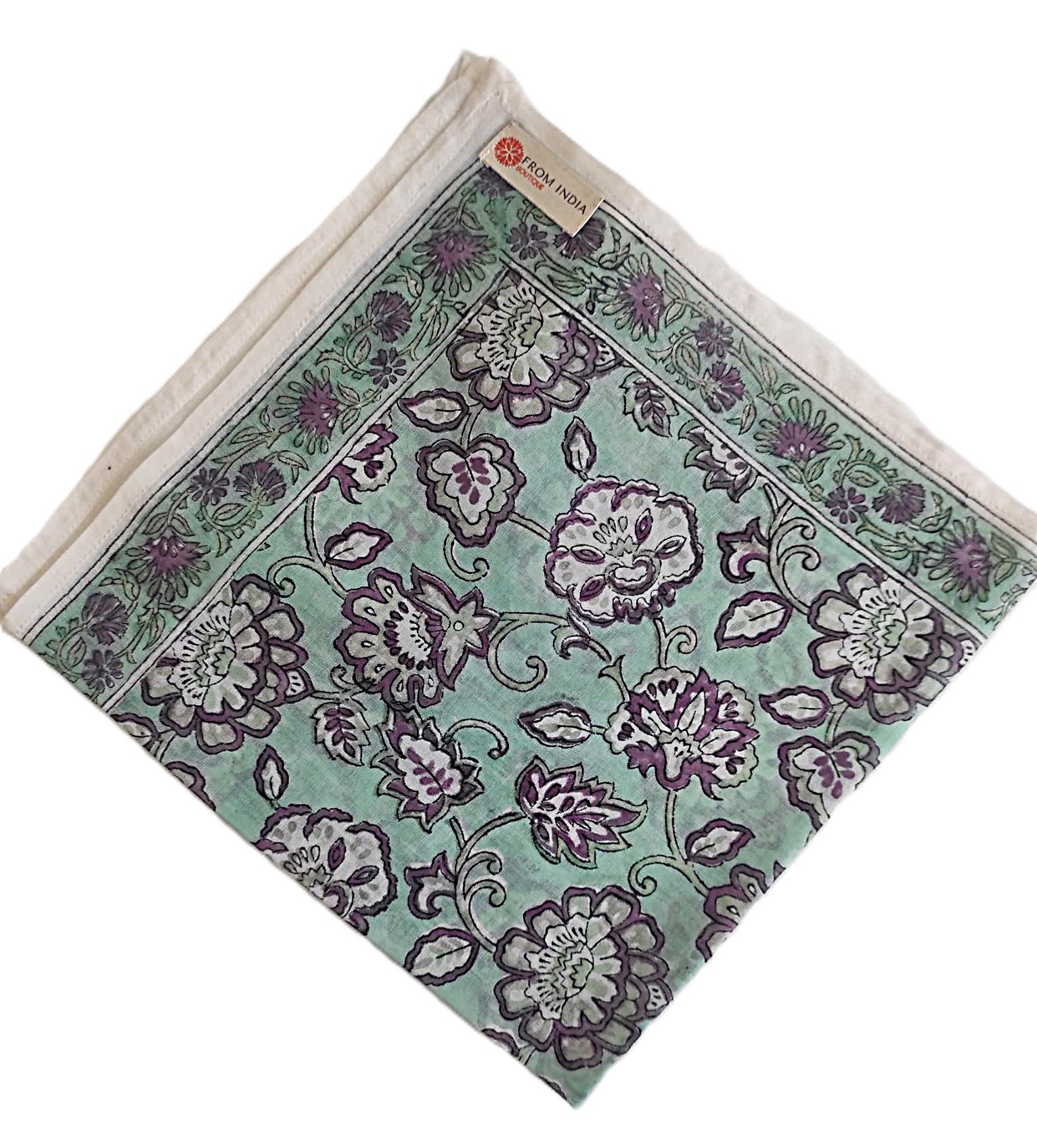 Carré foulard bandana en voile de coton – Block print Jaipur (50x50 cm) - MYSORE